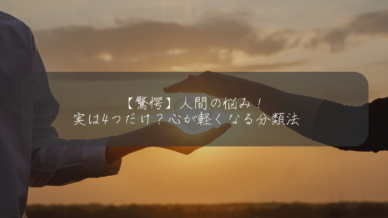 人間の悩みは実はたった4つに分類できる?お金・健康・人間関係・夢の4つの悩みと潜在意識の関係を解説。20代で悩みだらけだった私が発見した心が軽くなる整理法。今日からできる小さな一歩で、潜在意識を書き換えて人生を変える方法を実体験を交えてお伝えします。